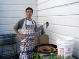 Jung Hwan Monitors the Grill